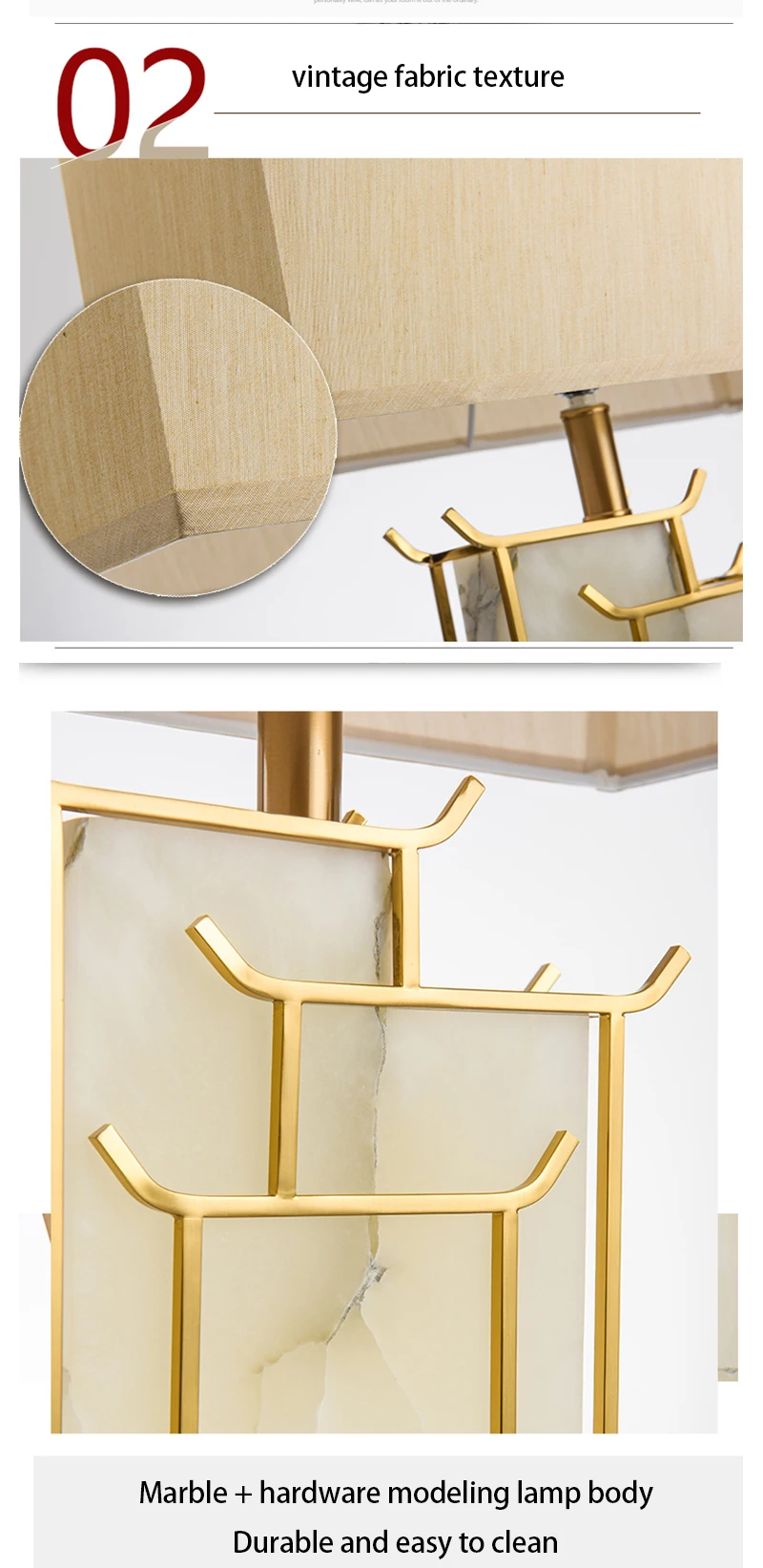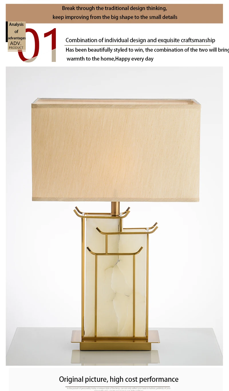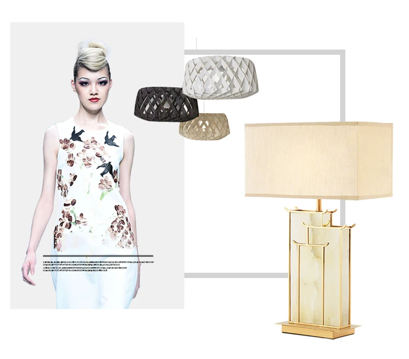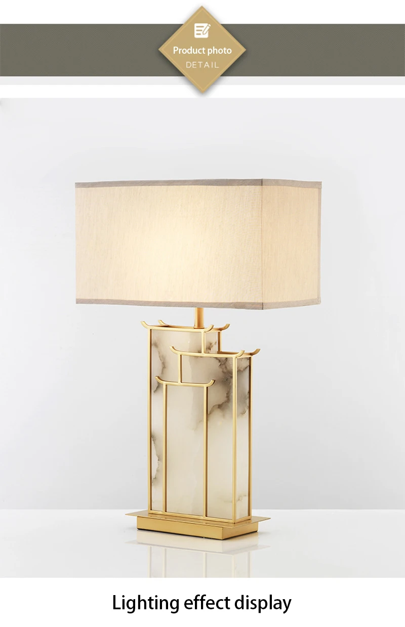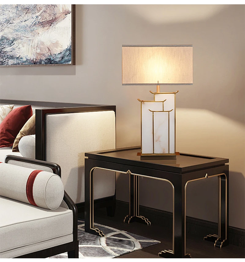Marble Fabric Table Lamp Oriental Design Dimmable LED Desk Lamp Light Luxury Home Decor Appliance Indoor Bedroom Living Room